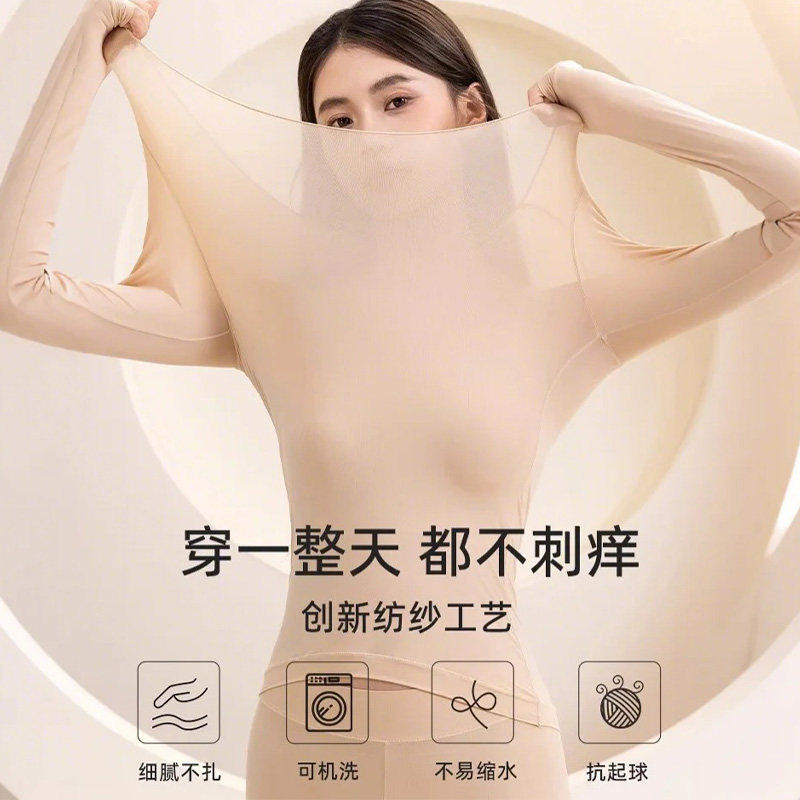 雅鹿超薄肌底衣女士美肤保暖内衣隐形无痕秋衣秋裤套装发热打底衫