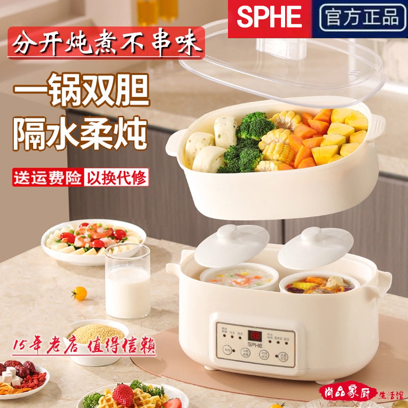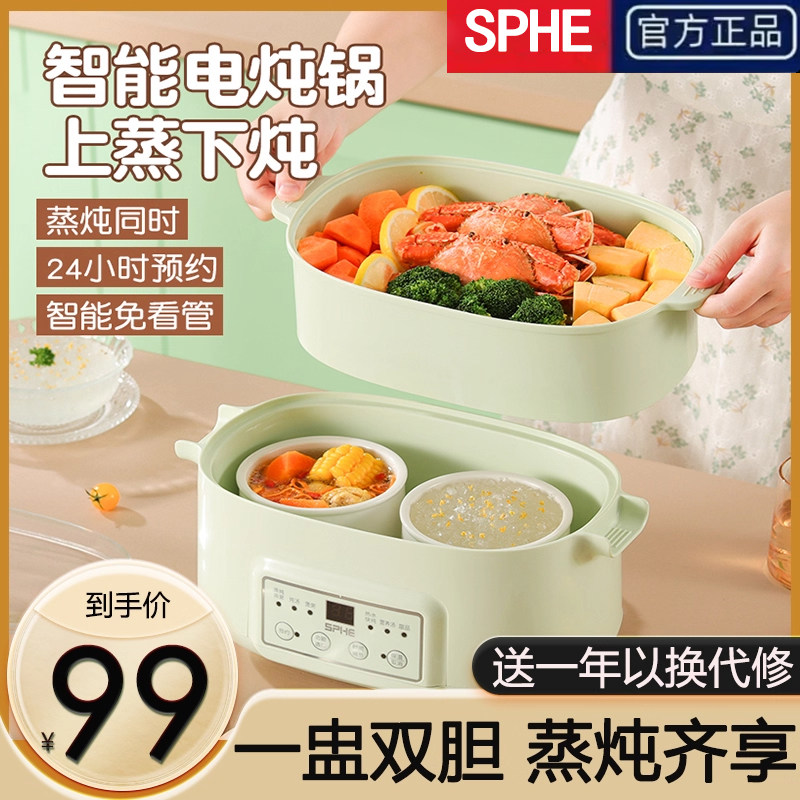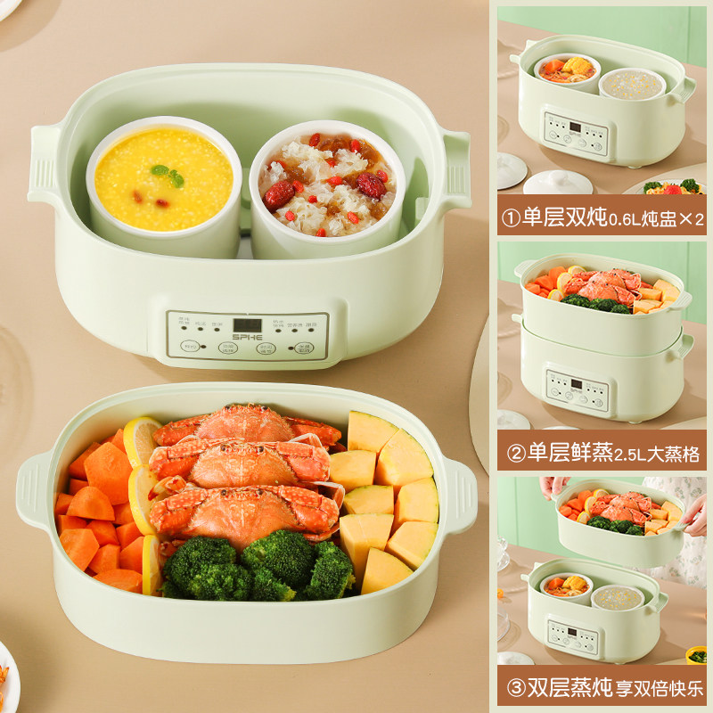 德国品质蒸煮一体锅全自动陶瓷隔水炖白瓷蒸汽锅插电炖盅煮粥煲汤