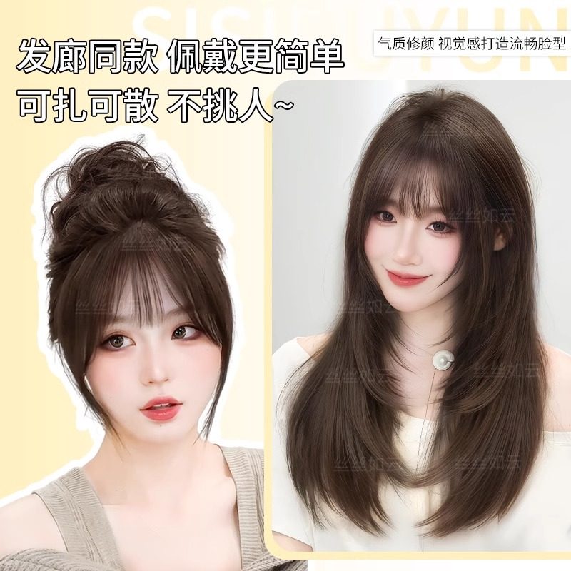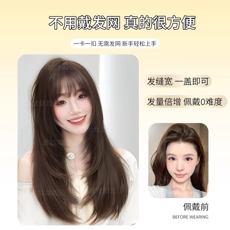【不用戴发网】假发女全头套头顶遮白发增发量补发片日常层次长发