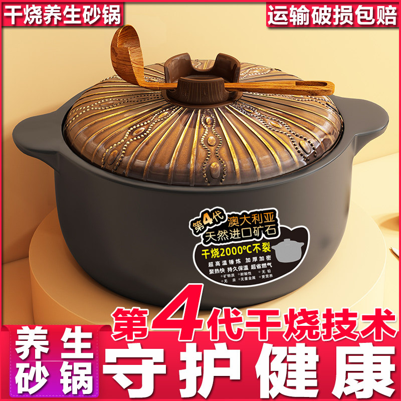 砂锅耐高温炖锅家用煲汤明火瓦罐干烧不裂陶瓷煲大沙锅燃气煤气灶