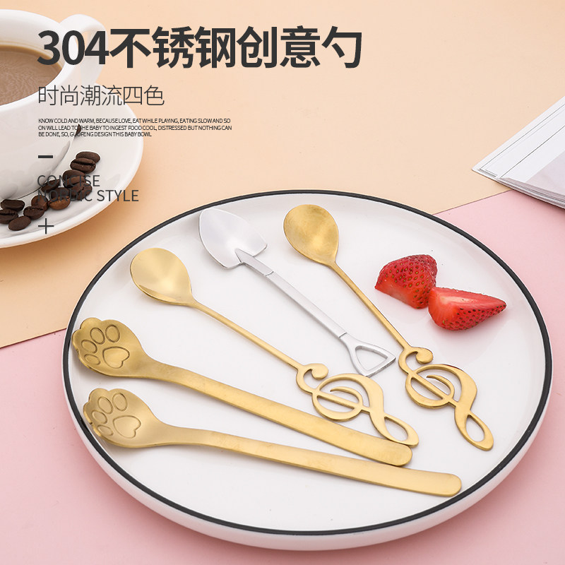 咖啡勺子304不锈钢创意长柄甜品勺咖啡匙搅拌勺家用调羹小汤匙