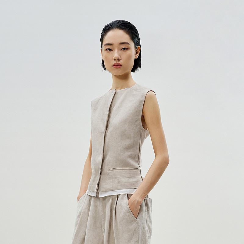 【迅系列】LESS环保亚麻短款马甲女通勤都市风西装马甲2P5511270