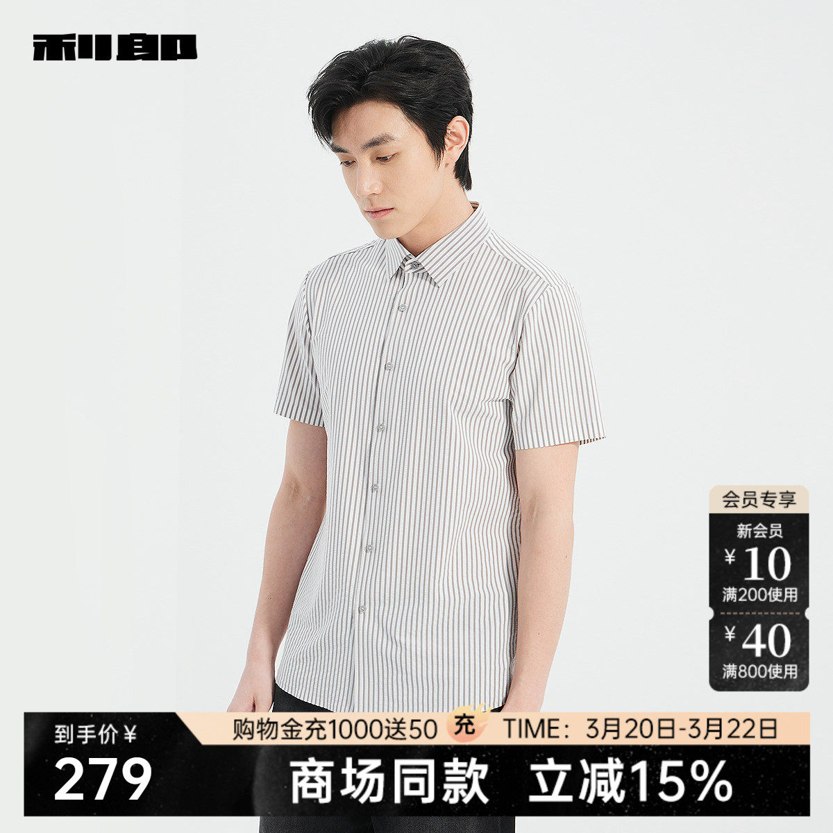 【商场同款】利郎官方 短袖衬衫男士条纹夏季衬衣25XXC1053S