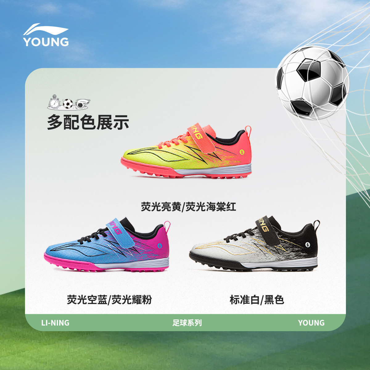 李宁儿童专业碎钉足球鞋疾影4TF男童鞋专用训练比赛运动鞋YKGW044