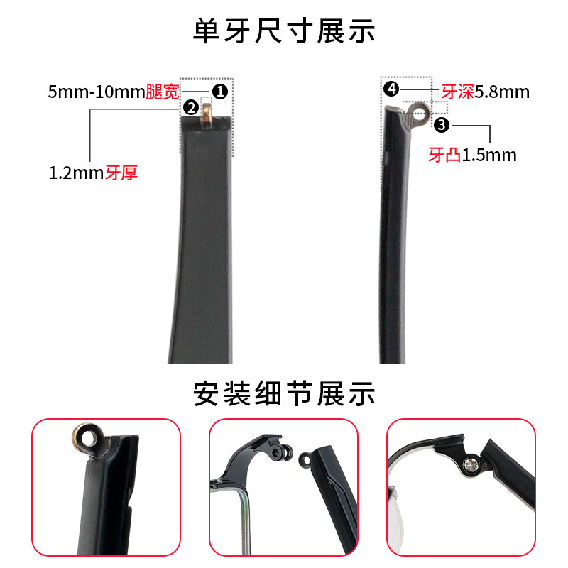 眼镜腿配件眼镜镜腿一对脚通用断裂修复硅胶眼睛腿镜框单牙金属