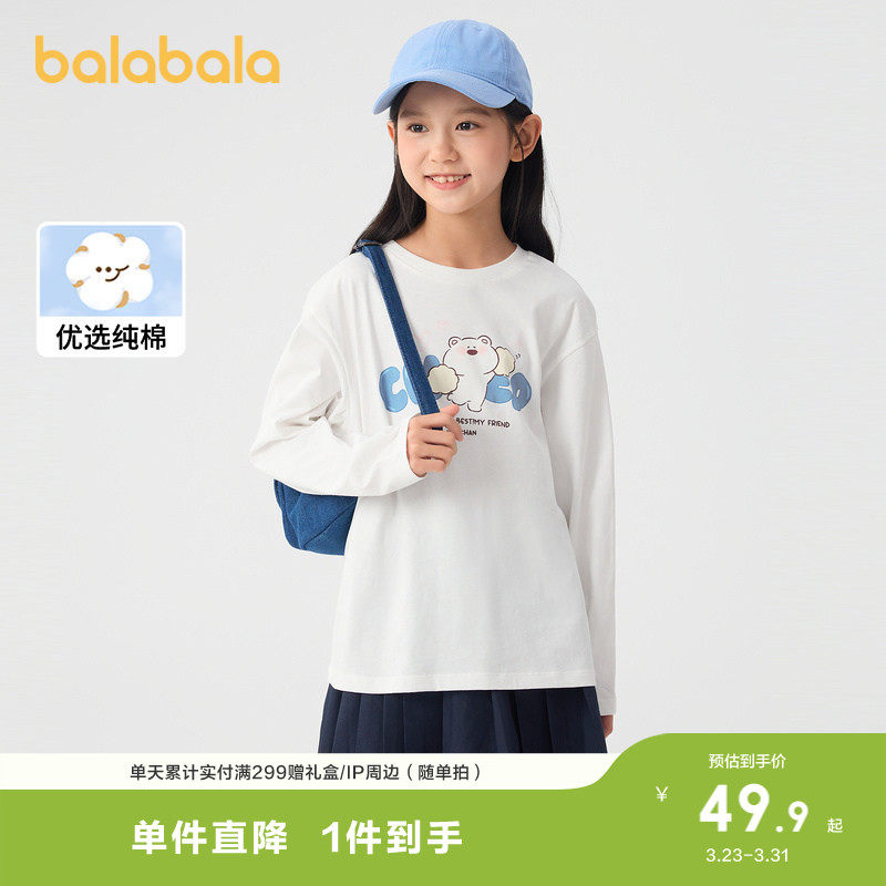 巴拉巴拉童装女童长袖T恤衣服春秋装儿童印花上衣亲子装打底衫潮