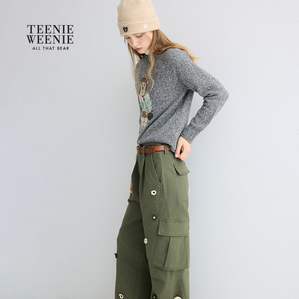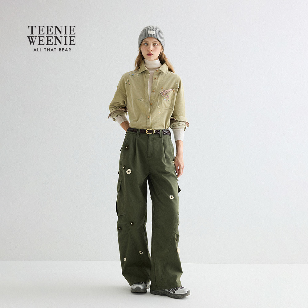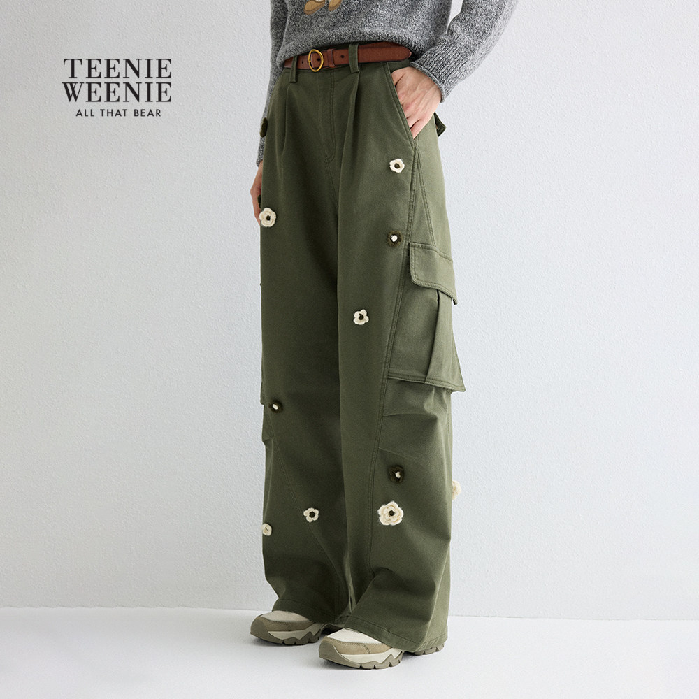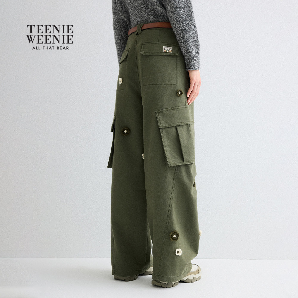TeenieWeenie小熊女装休闲裤秋冬季立体花朵内磨毛工装裤长裤子