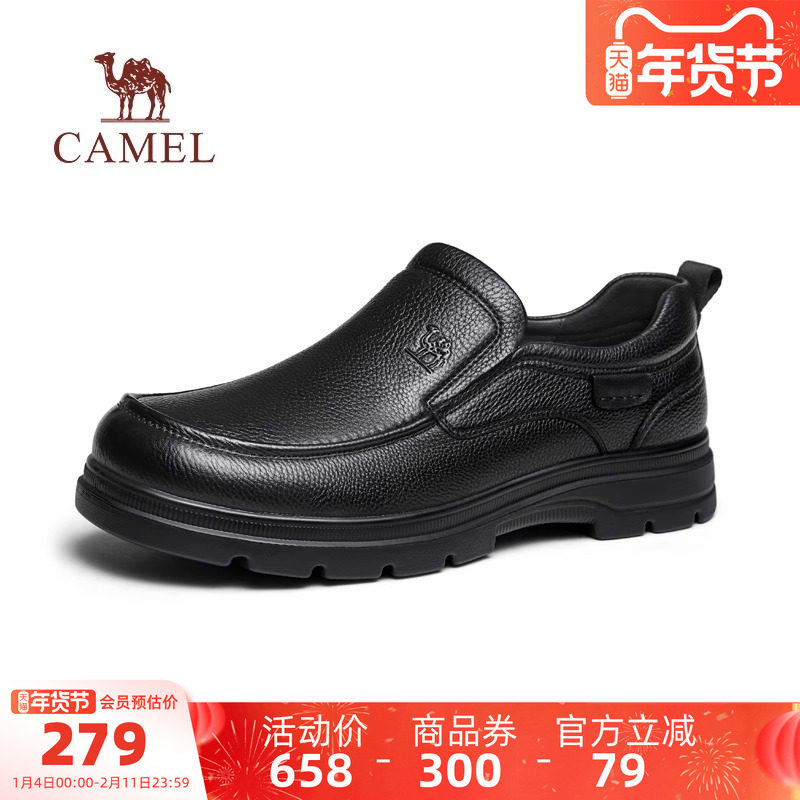 骆驼男鞋2025秋季新款柔软牛皮套脚爸爸鞋增高经典商务休闲皮鞋男