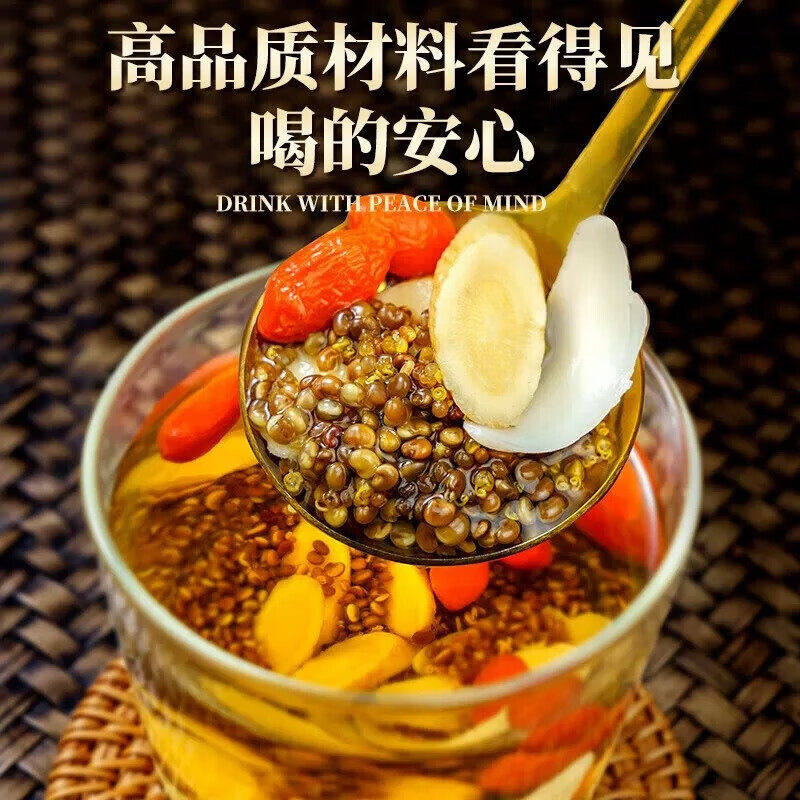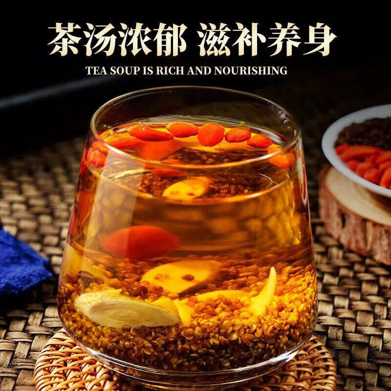 草晶华玫瑰桑椹酸枣仁芡实红豆薏米菊花枸杞人参黄精玛咖茶冲饮茶
