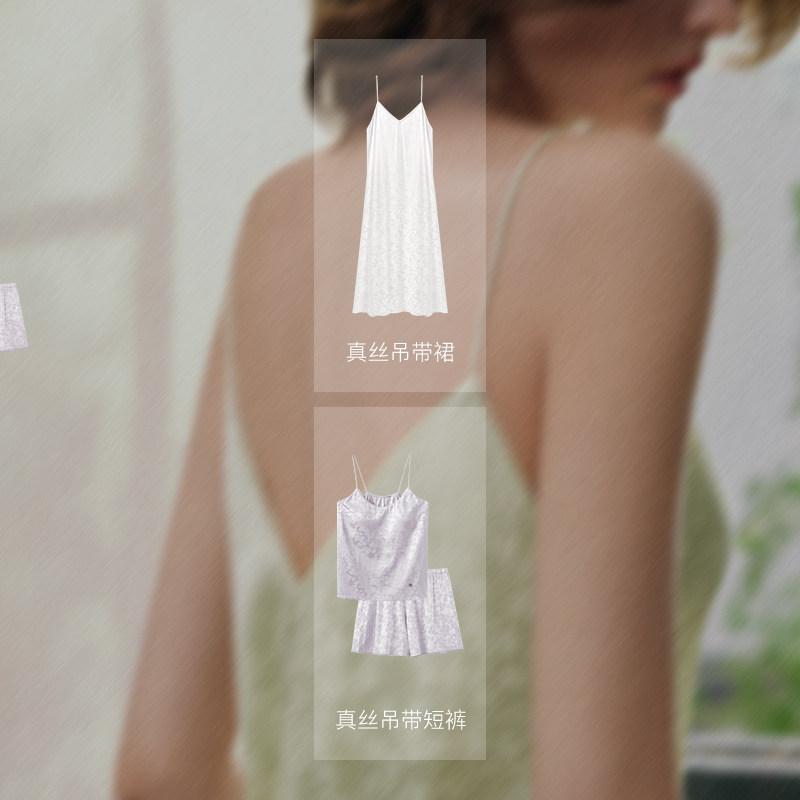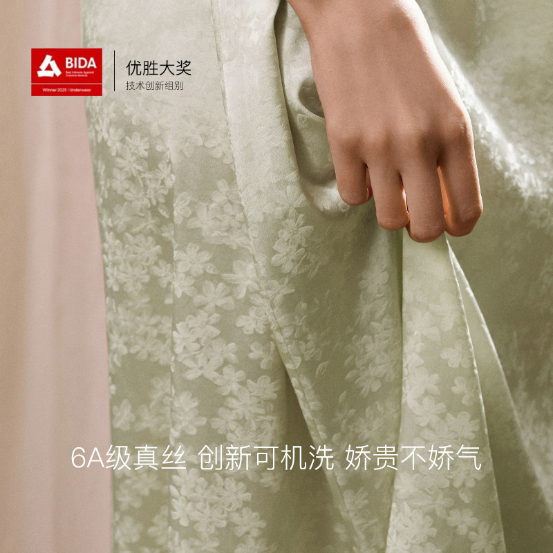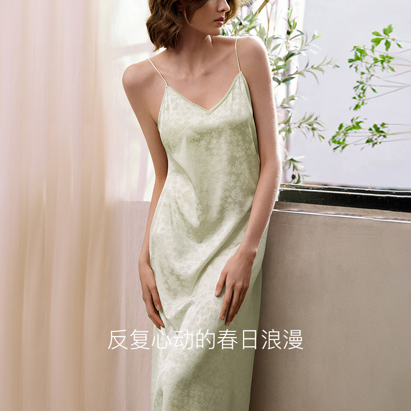 ubras轻奢系列真丝睡衣春日桃花提花桑蚕丝吊带裙新款睡袍秋冬季
