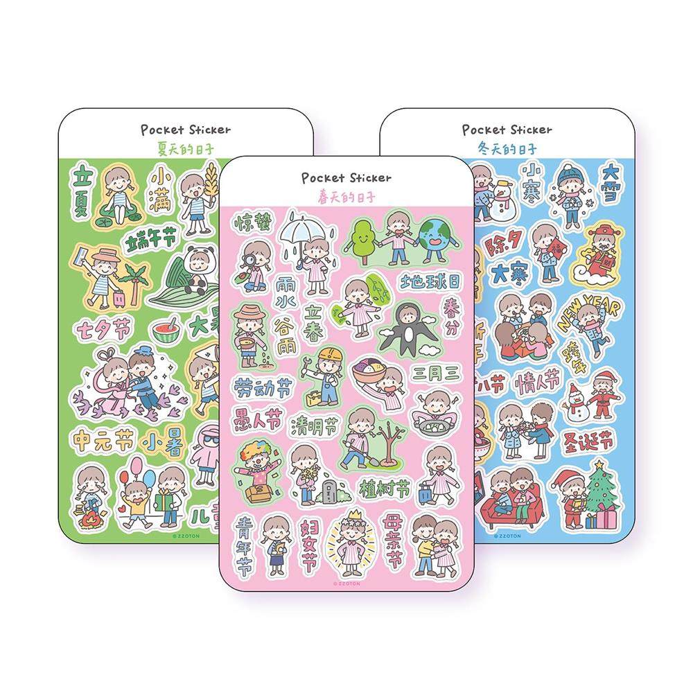 卓大王【阿卓口袋贴纸】麻将卡拉ok节日节气日常手帐春夏秋冬季节