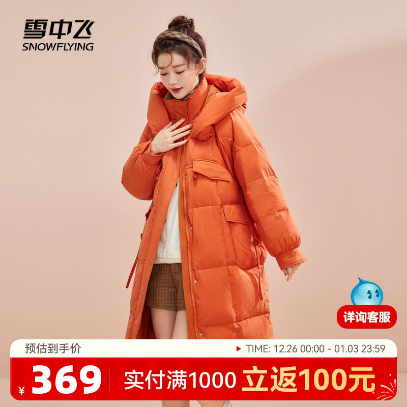 雪中飞2025秋冬新款女士长款羽绒服韩版气质胡萝卜色过膝保暖