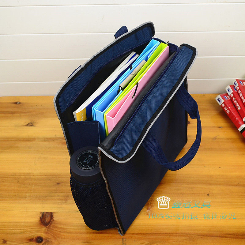 竖式帆布手提文件袋资料袋大容量a4文件包双层学生手拎补习袋防水