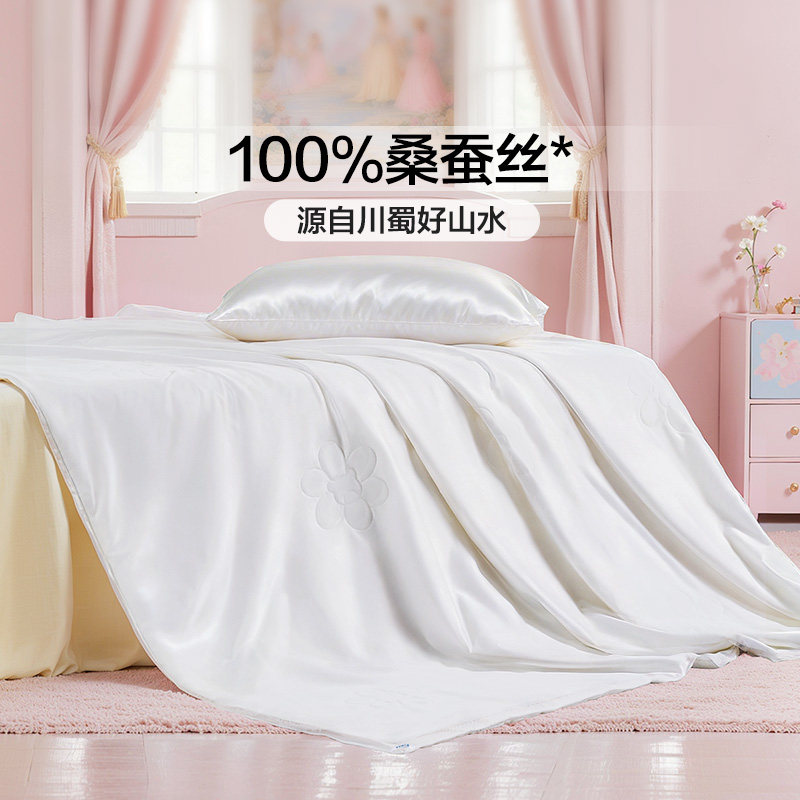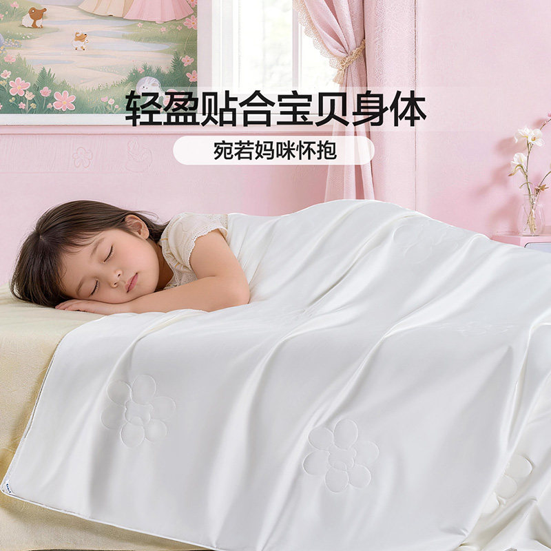 富安娜母婴A类低敏桑蚕丝被儿童可水洗空调被子60S纯棉宝宝夏凉被