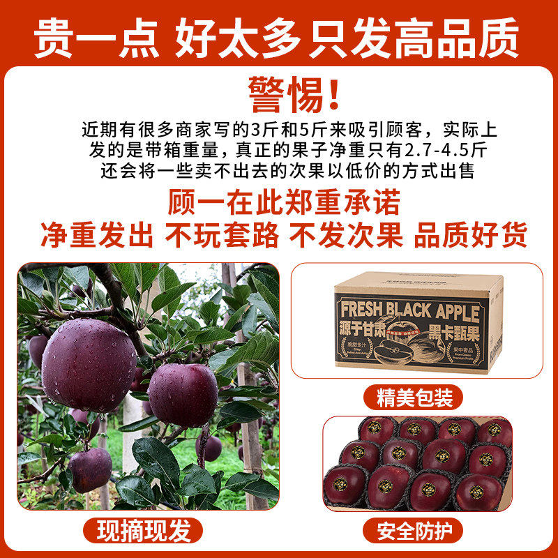 甘肃天水黑卡苹果黑花牛苹果新鲜水果稀有苹果冰糖心粉面香甜10斤