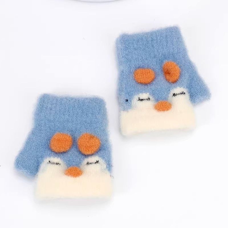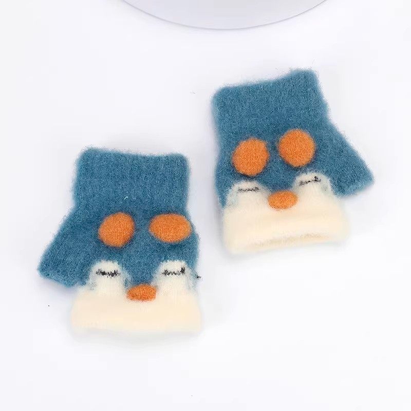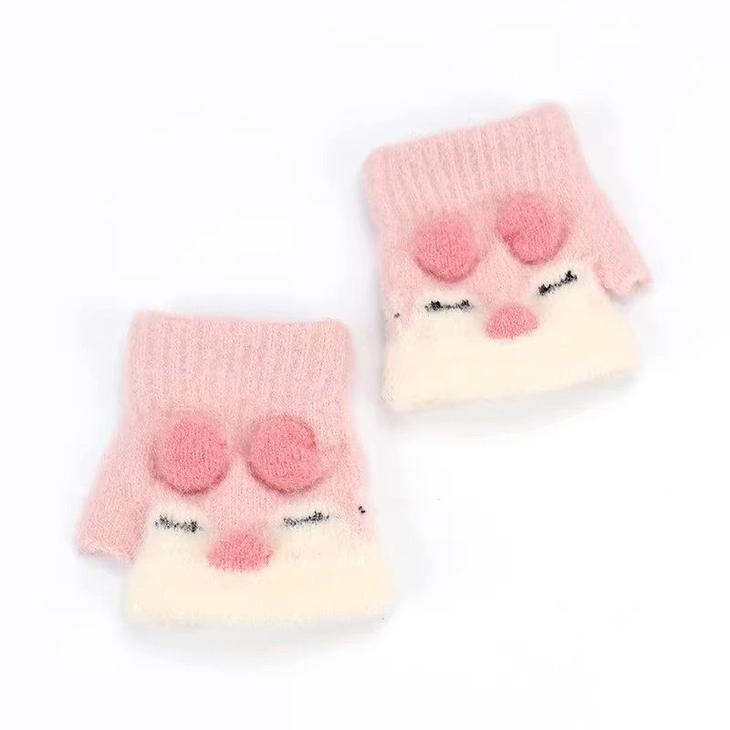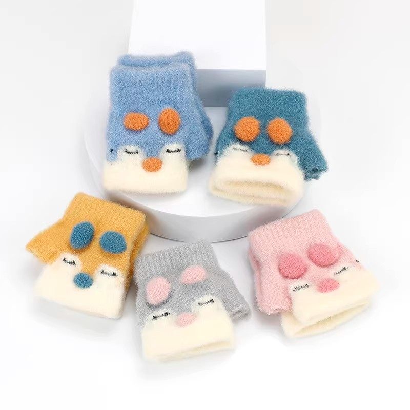儿童手套半指翻盖冬天季保暖毛绒小学生女孩男童宝宝可爱露指写字