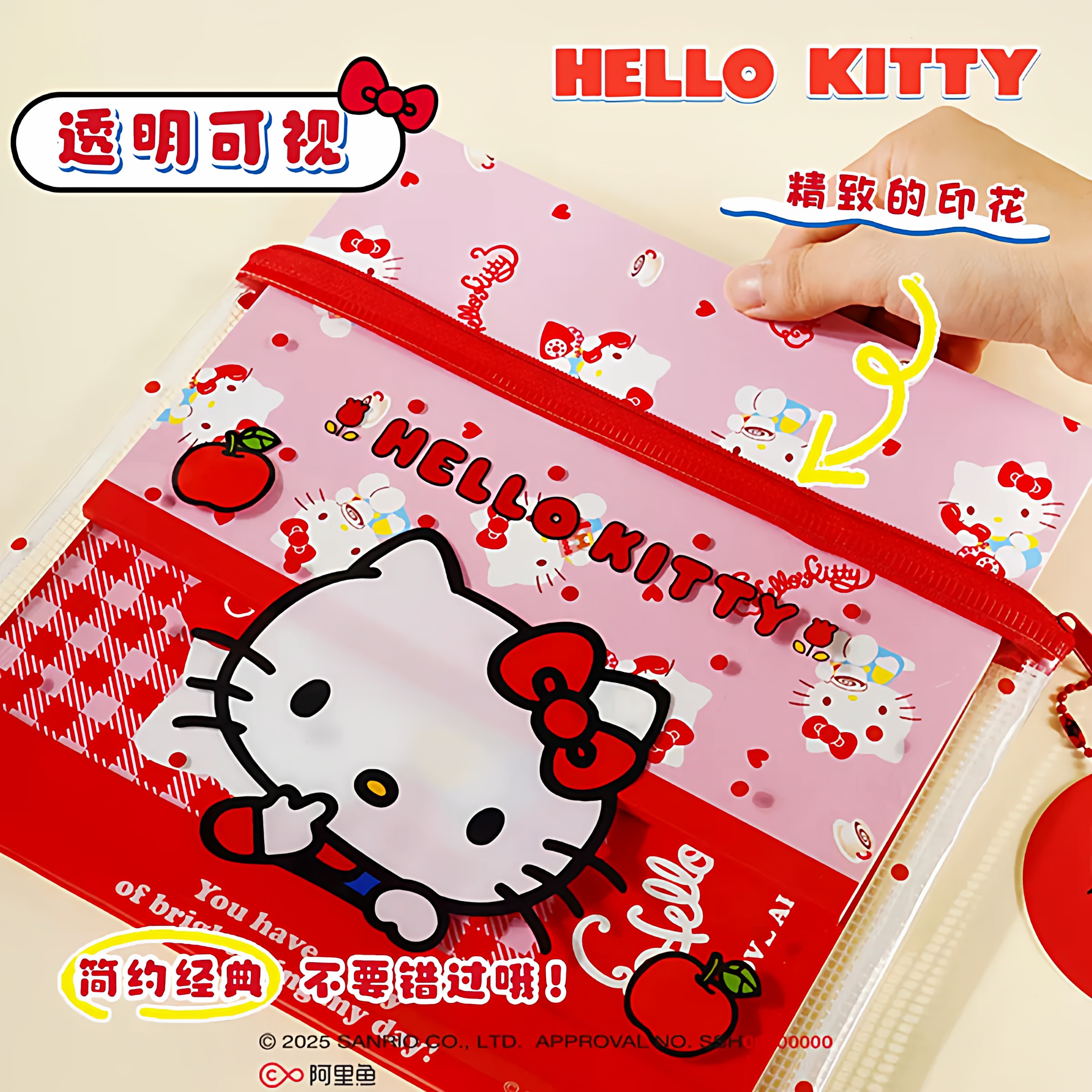 正版授权HelloKitty凯蒂猫A5拉链袋文具包防水收纳袋便携零钱包