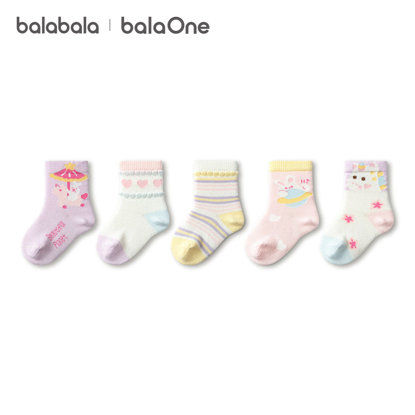巴拉巴拉儿童袜子春秋男女童棉袜宝宝婴幼儿中筒不勒无骨缝五双装