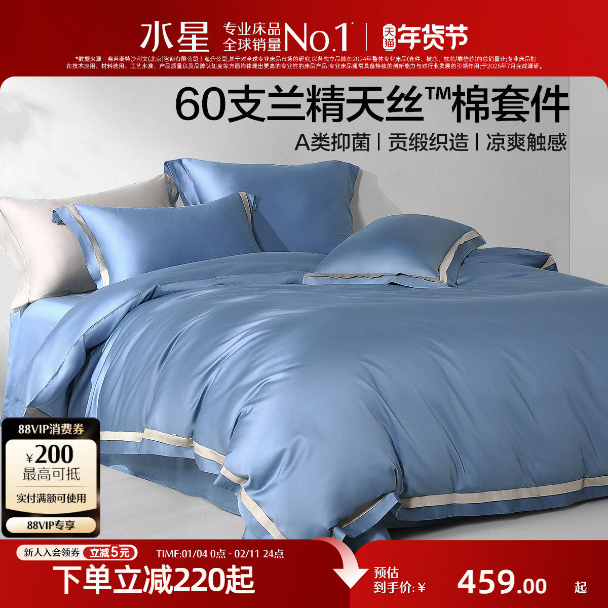 水星家纺60支天丝™棉四件套莱赛尔棉贡缎轻奢套件床单被套