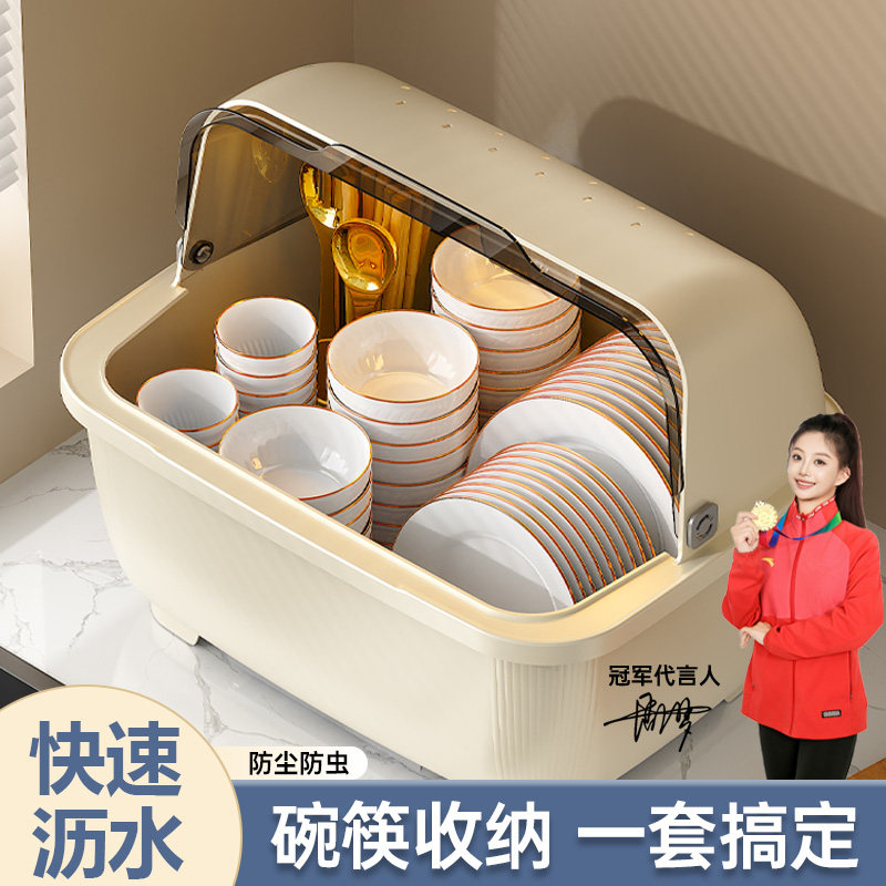 厨房沥水碗架带盖防尘碗碟置物架塑料大容量筷子笼碗盘收纳架碗柜