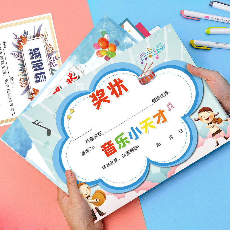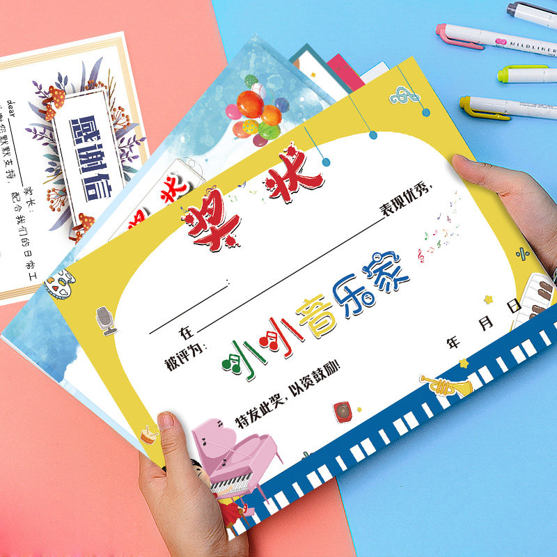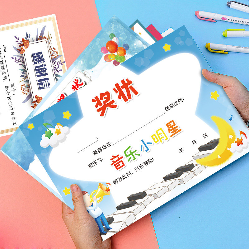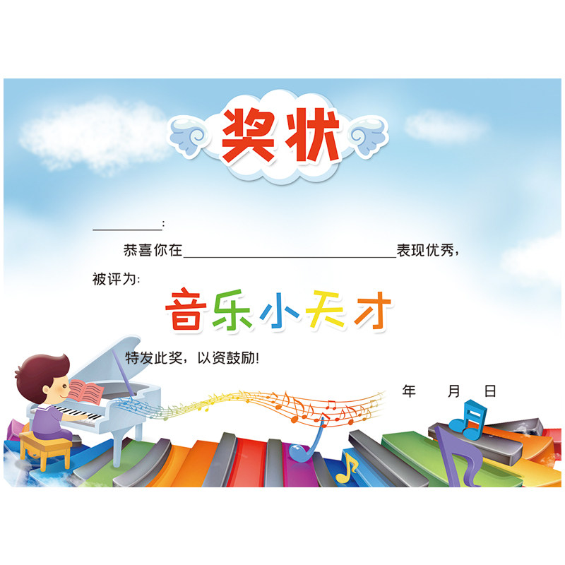 与优 A4 157克加厚铜版纸 原可爱 音乐奖状 小小音乐家 音乐之星 钢琴 吉他培训班奖状荣誉证书 可定制
