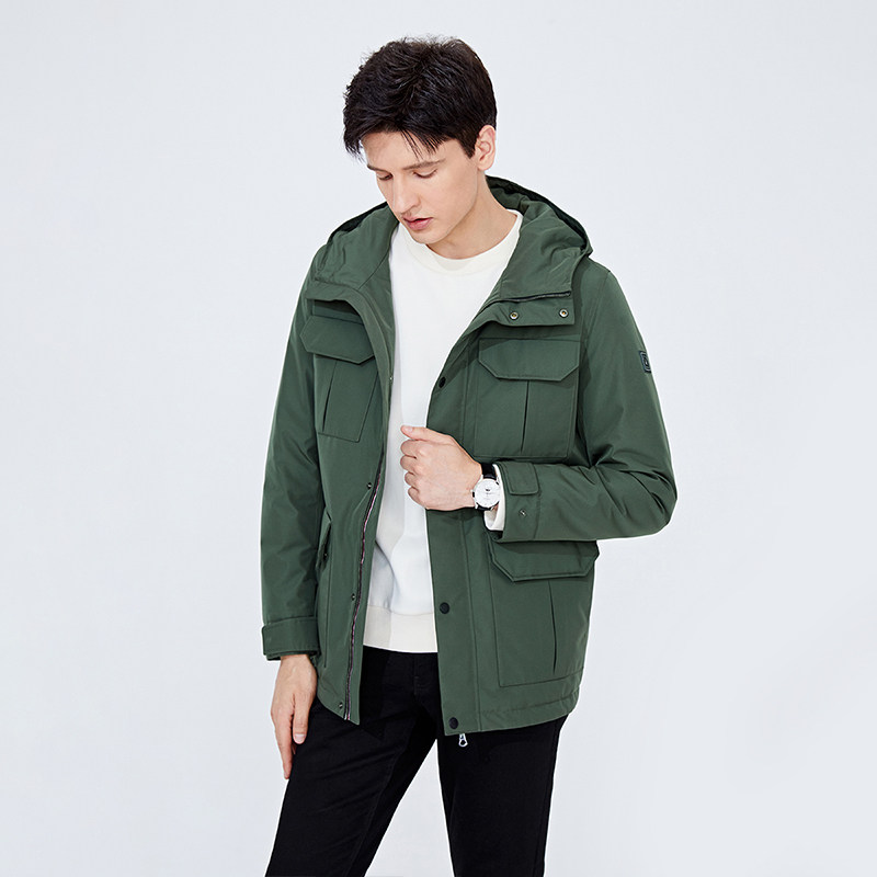 鸭鸭轻薄羽绒服男士2025年秋冬反季短款保暖休闲时尚连帽鸭绒外套