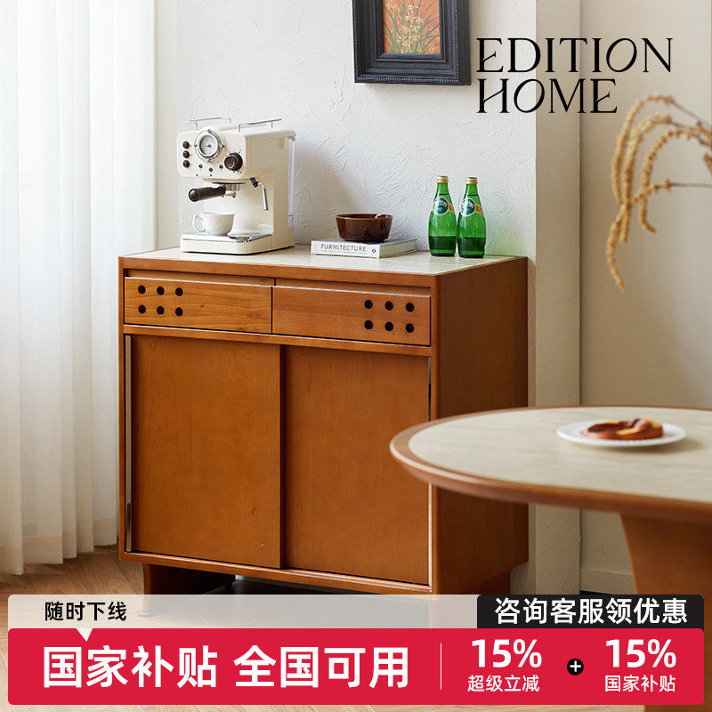 斯卡帕餐边柜复古实木洞石岩板茶台储物柜法式餐厅橱柜多功能边柜