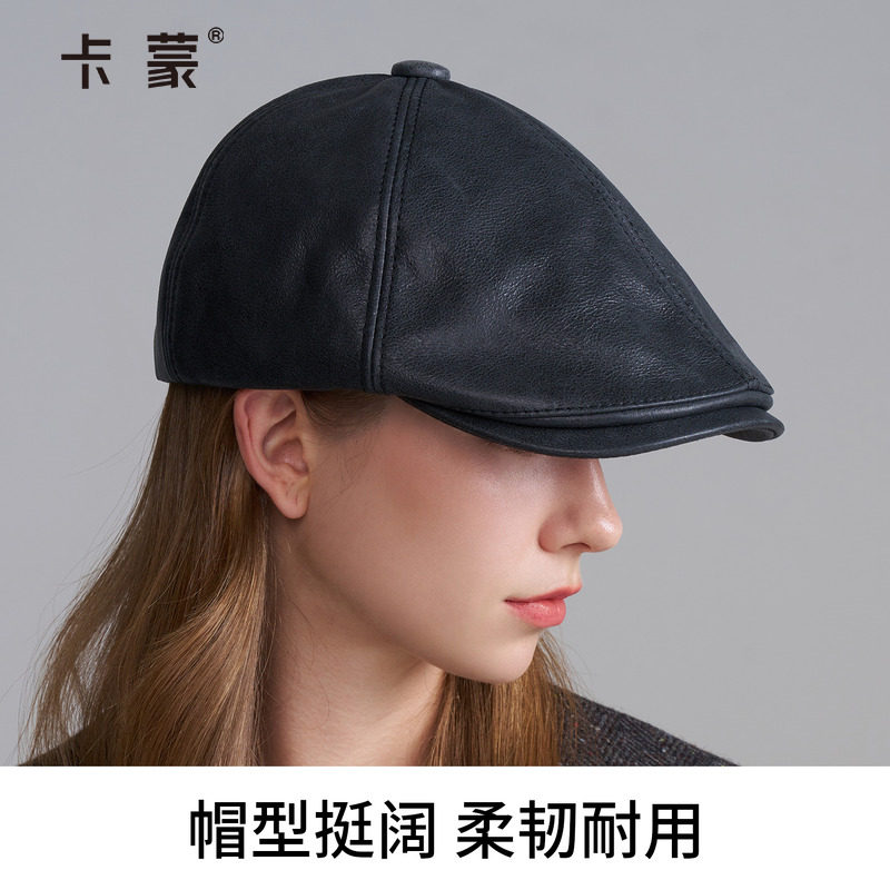 卡蒙新款帽子真皮贝雷帽女冬时尚复古防寒保暖前进帽鸭舌帽旗舰店