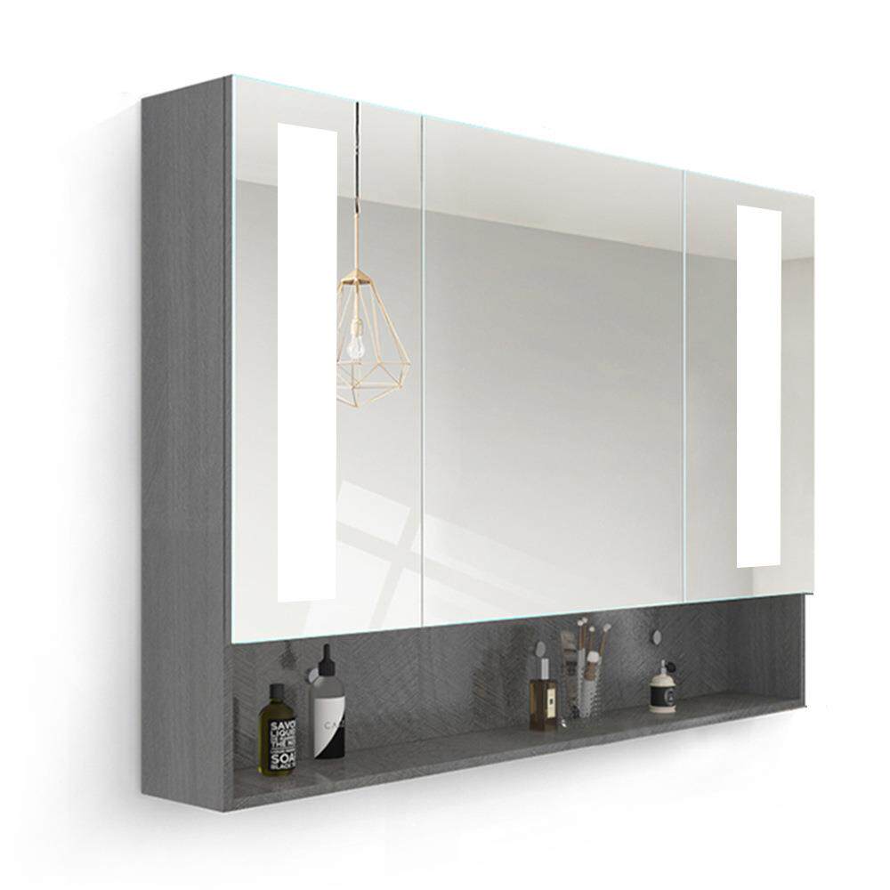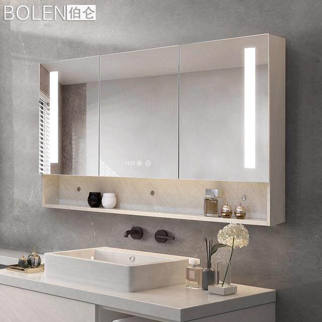 BOLEN浴室镜柜挂墙卫生洗手间镜子柜带置物架带灯开放格触控储物