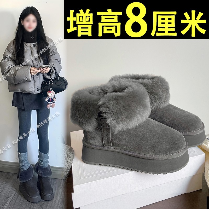 miu家厚底雪地靴女冬季真皮短靴羊毛侧拉链增高厚底加绒毛毛棉鞋