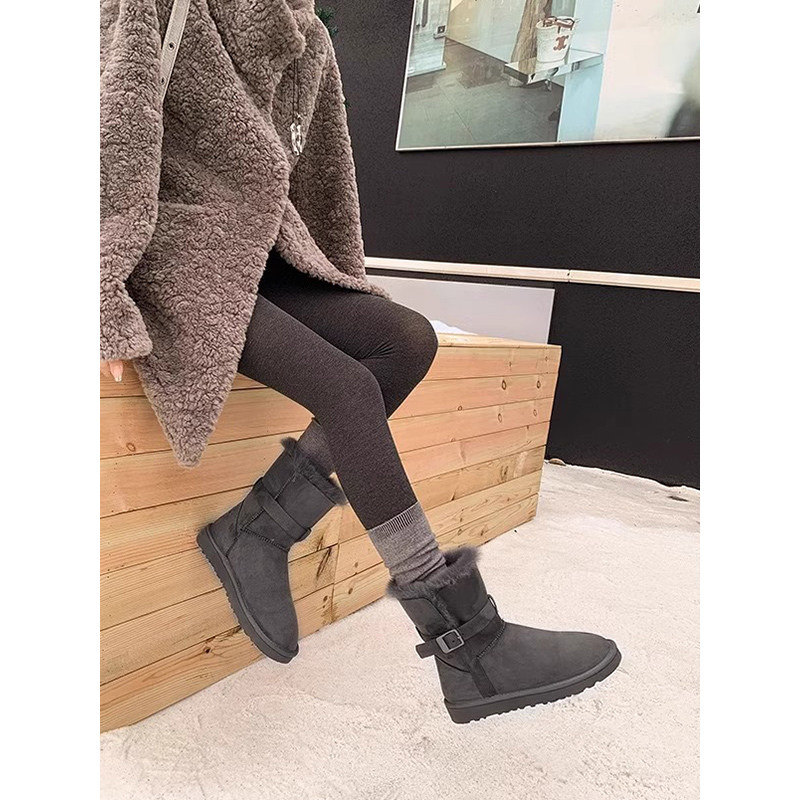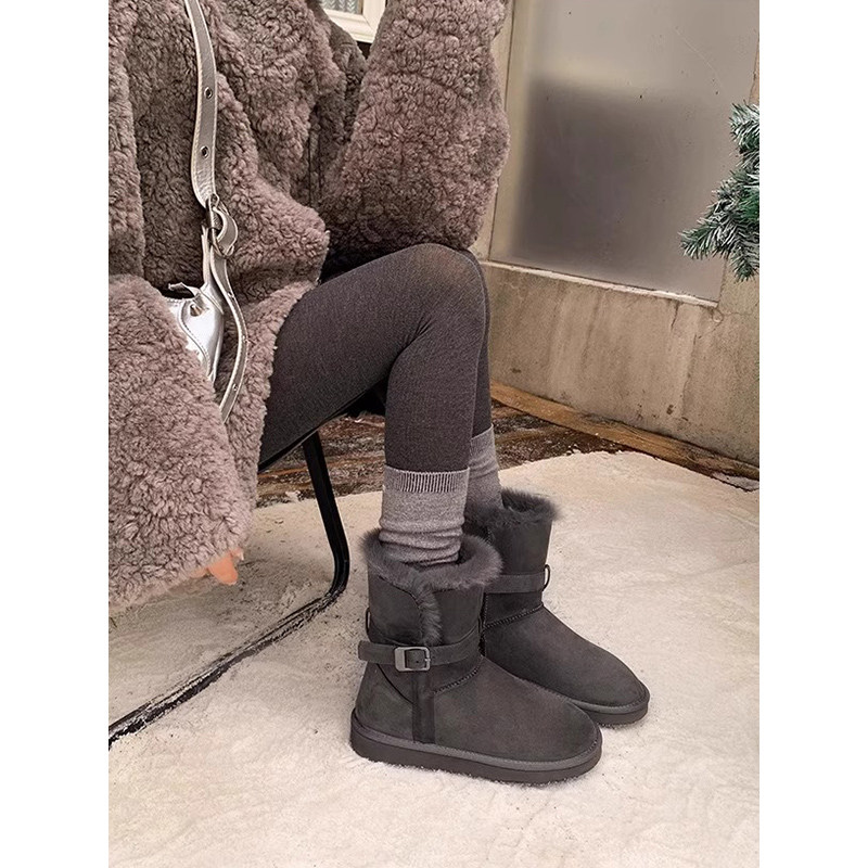 油叽叽~真皮羊毛雪地靴女冬季加绒加厚保暖棉靴厚底增高短筒靴子