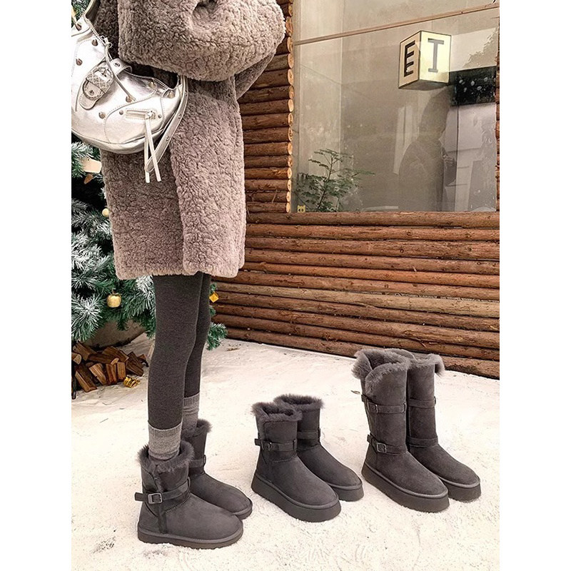 灰色厚底内增高毛毛雪地靴女2025加绒加厚棉靴防滑鞋子中筒羊毛