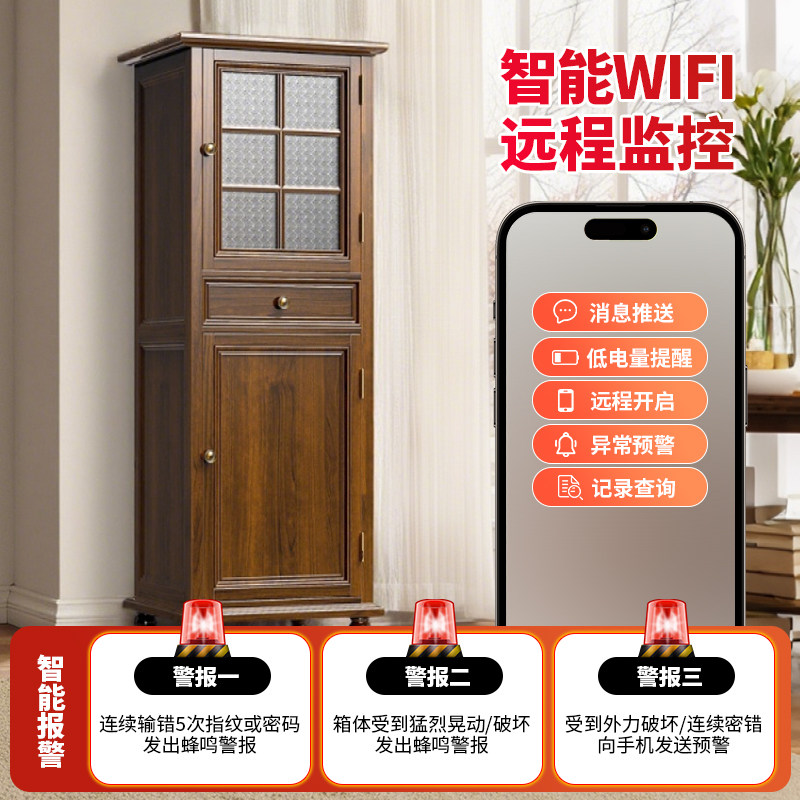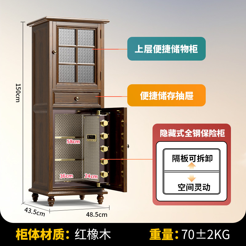 虎牌新款美式乡村实木隐形保险柜家用角柜展示柜箱2025新款防盗客厅卧室收纳柜高端全钢大容量保险箱150cm高
