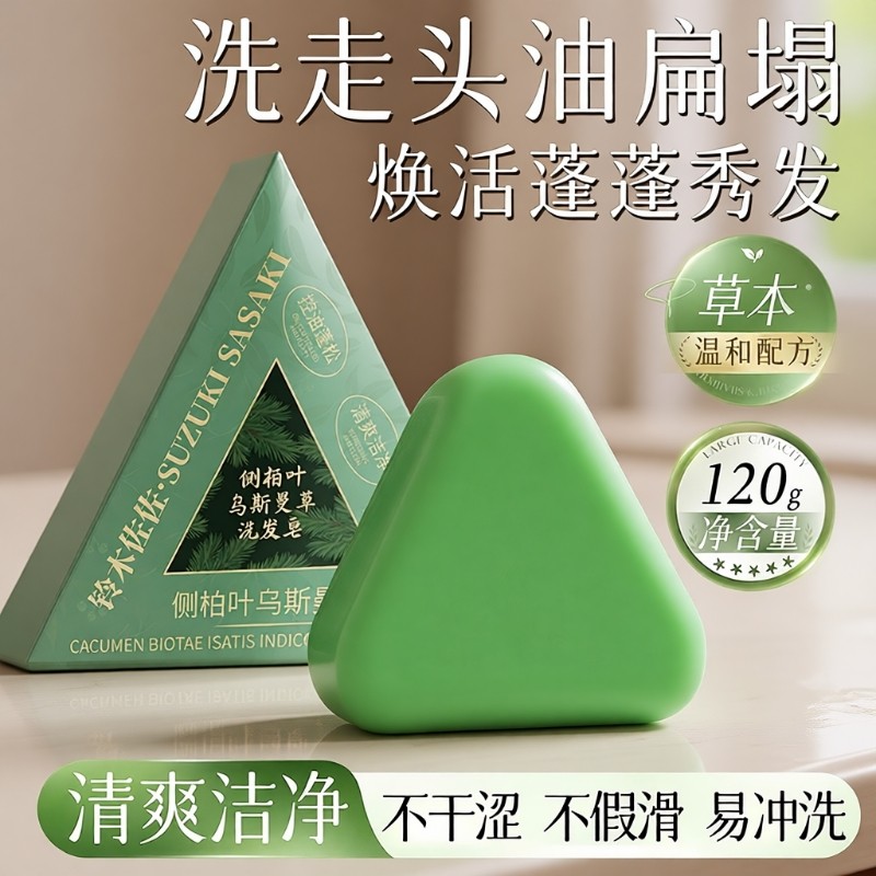 侧柏叶洗发皂何首乌新疆乌斯曼草黑发防断发控油去屑香皂手工固发