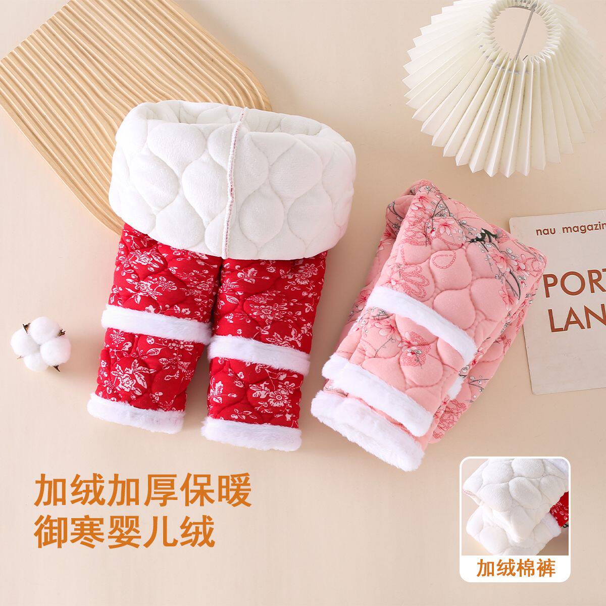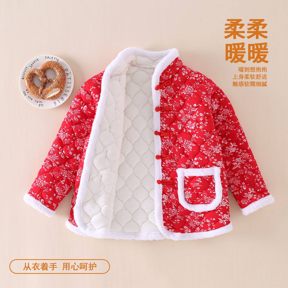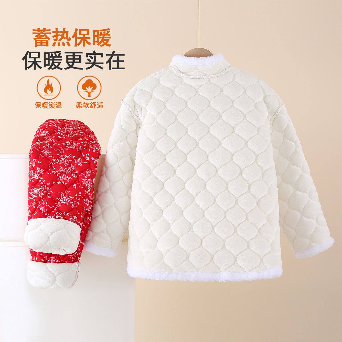 2026年春秋冬新款加厚夹棉中大童棉袄棉裤套装拜年服加绒保暖女童