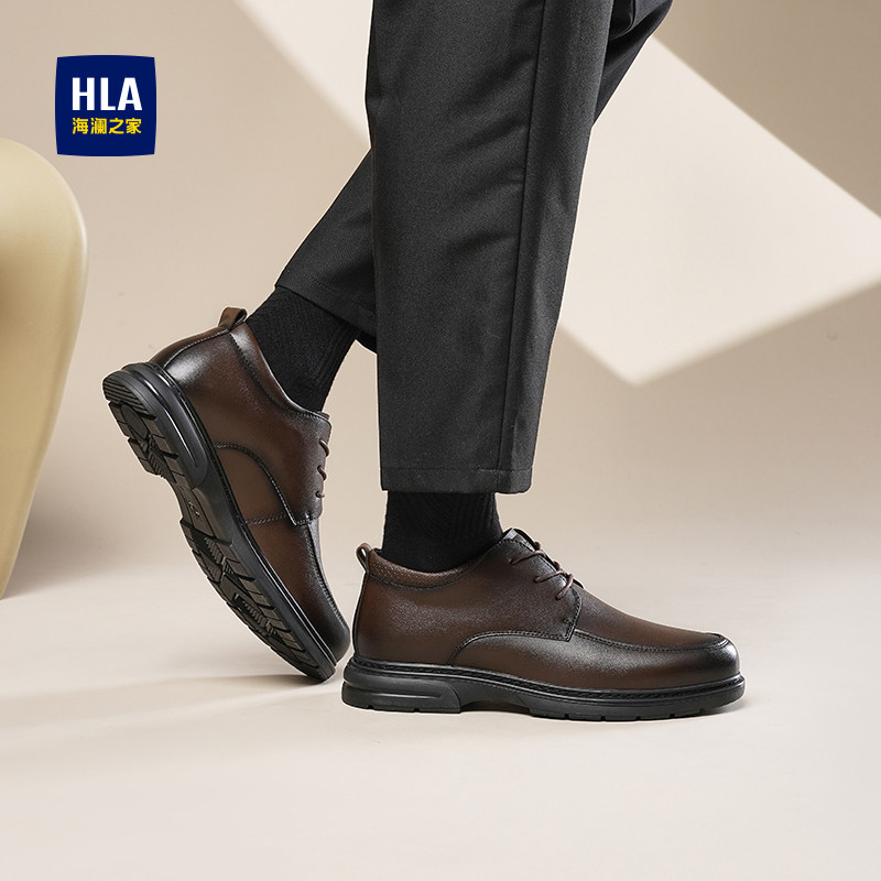 HLA/海澜之家男鞋秋冬新款男皮鞋商务通勤皮鞋系带耐磨休闲皮鞋
