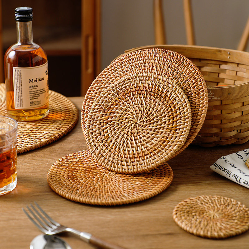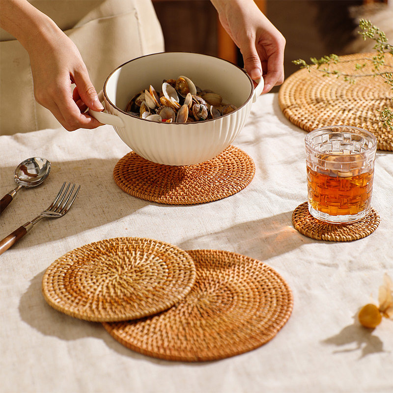 舍里越南藤编杯垫精致隔热垫碗垫餐桌垫厨房防烫锅垫餐垫防滑垫子