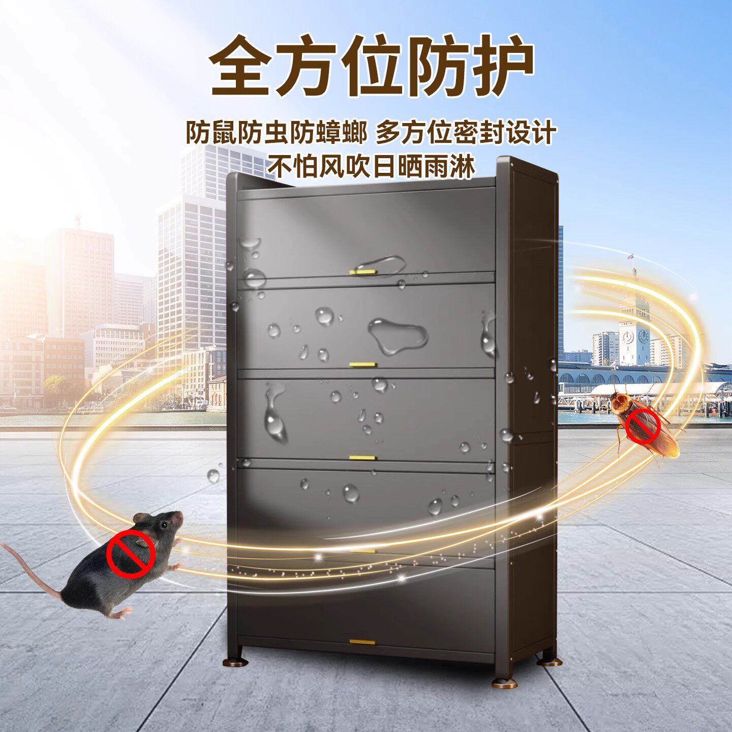 家用阳台防晒储物柜钢制收纳置物柜一体靠墙多层防尘杂物铁皮柜子