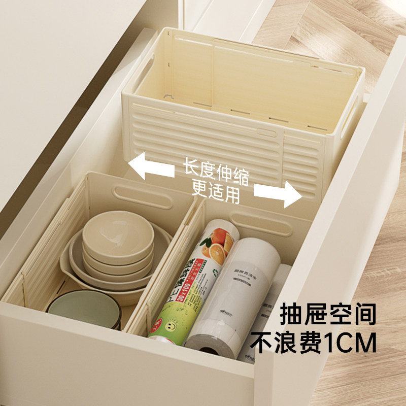 橱柜收纳盒抽屉式可伸缩厨房杂物收纳筐家用桌面零食整理盒储物盒