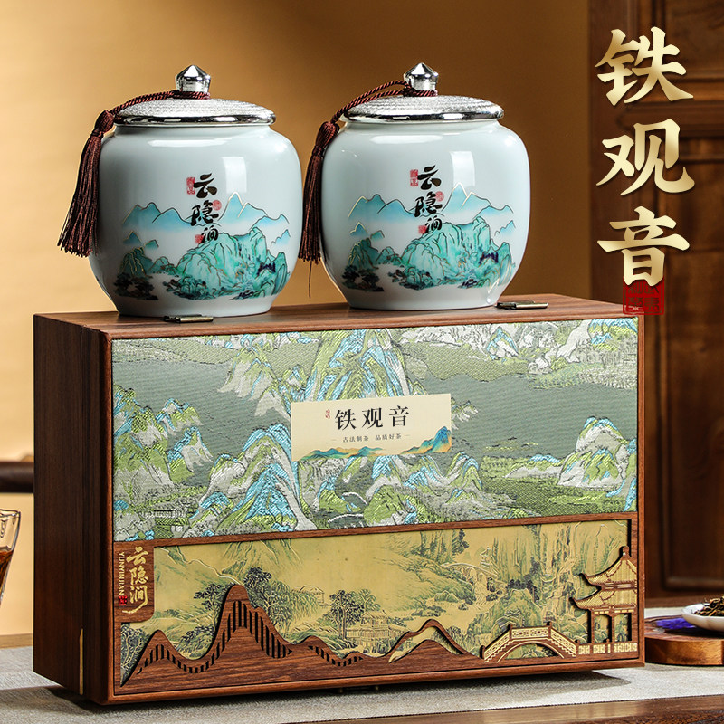 2025新茶特级安溪铁观音浓香型茶叶陶瓷罐木质礼盒装年货送礼500g