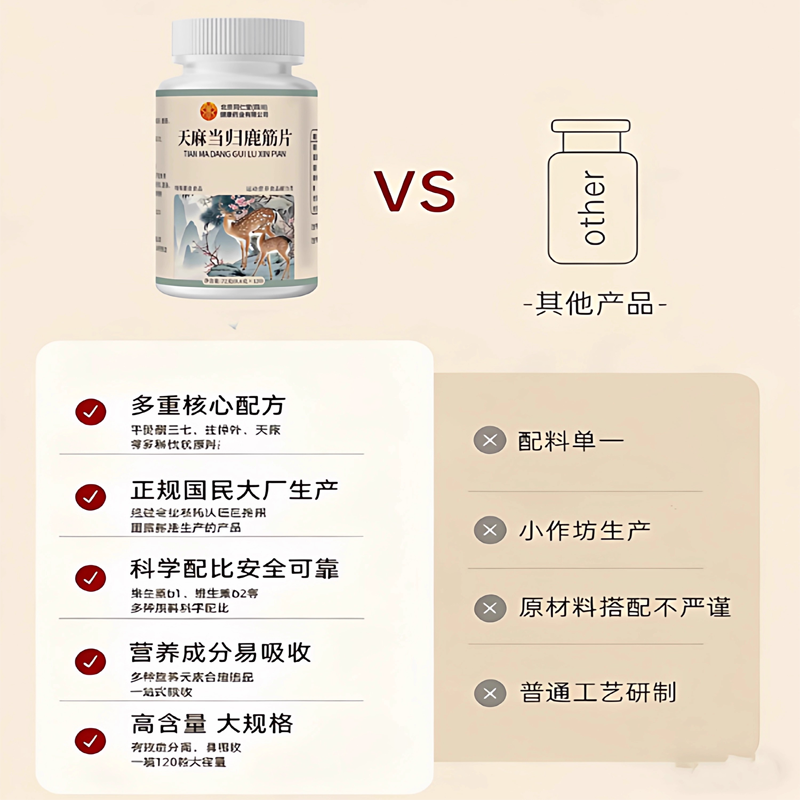 天麻当归鹿筋片官方旗舰店正品味草本萃取药房直售120片多规格