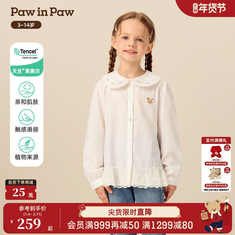 【天丝】PawinPaw卡通小熊童装25年冬季新款女童翻领梭织衬衫