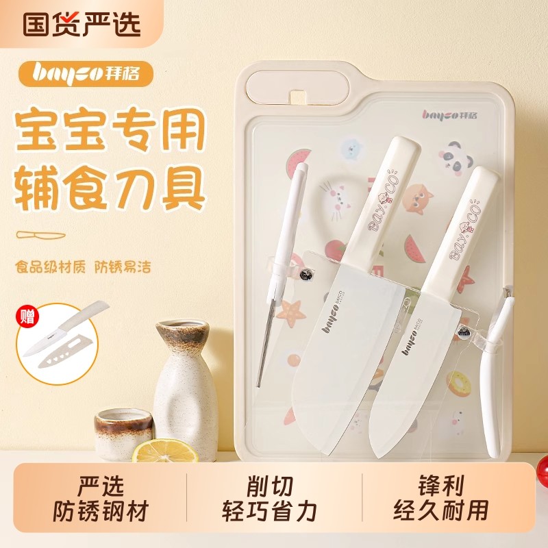 拜格厨房辅食菜板刀具套装宝宝专用辅食工具全套婴儿菜刀家用组合