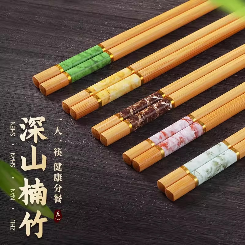 高档楠竹筷子天然家用新款抗菌防霉防滑耐高温一人一筷餐具套装