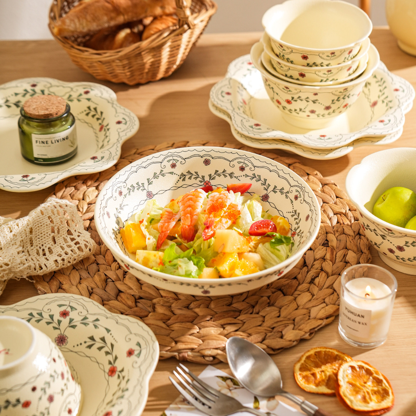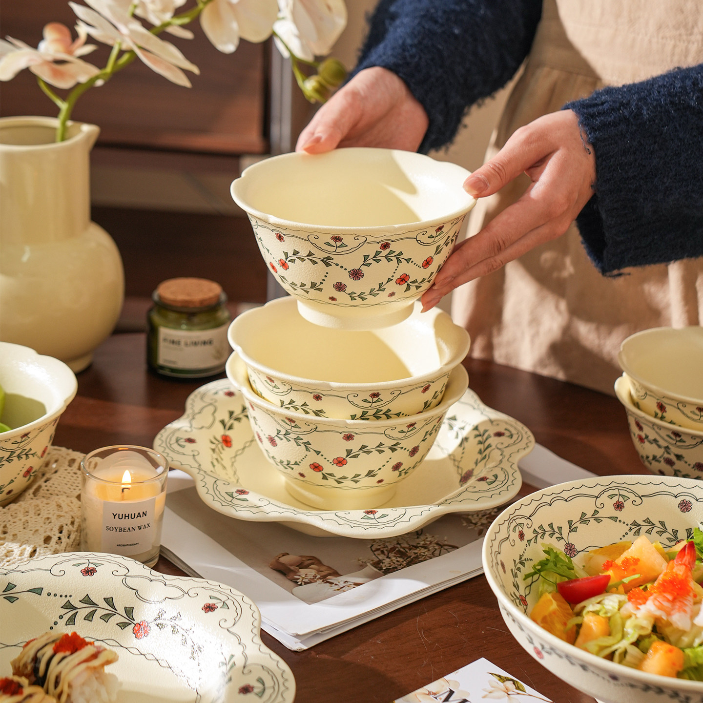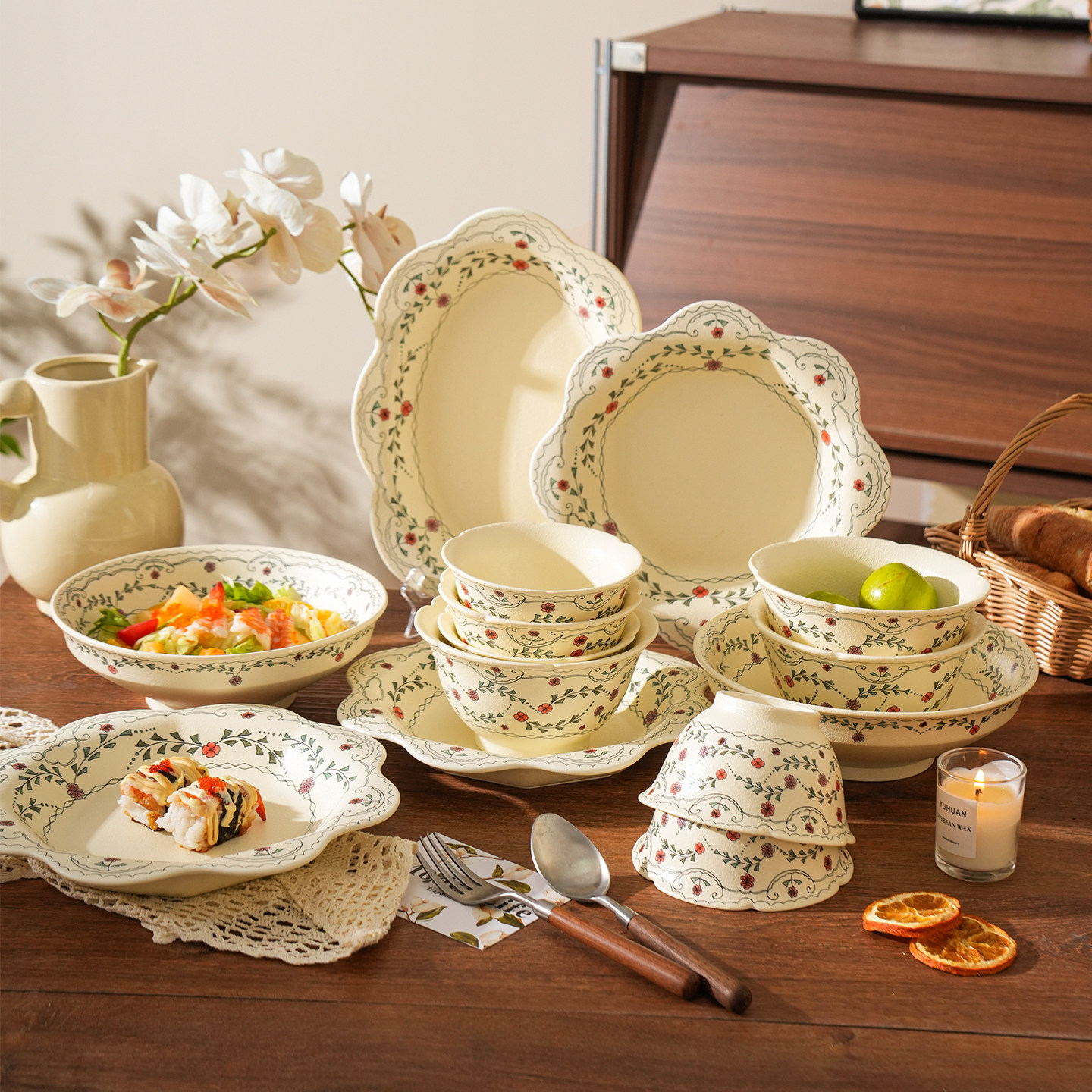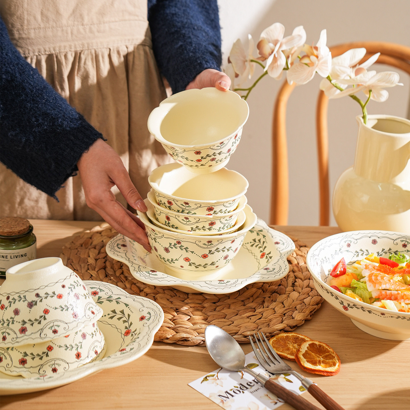 舍里复古田园风陶瓷碗碟套装家用轻奢餐具高级感米饭碗菜盘鱼盘