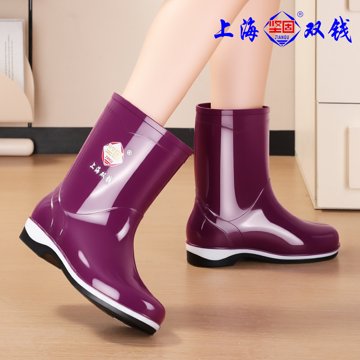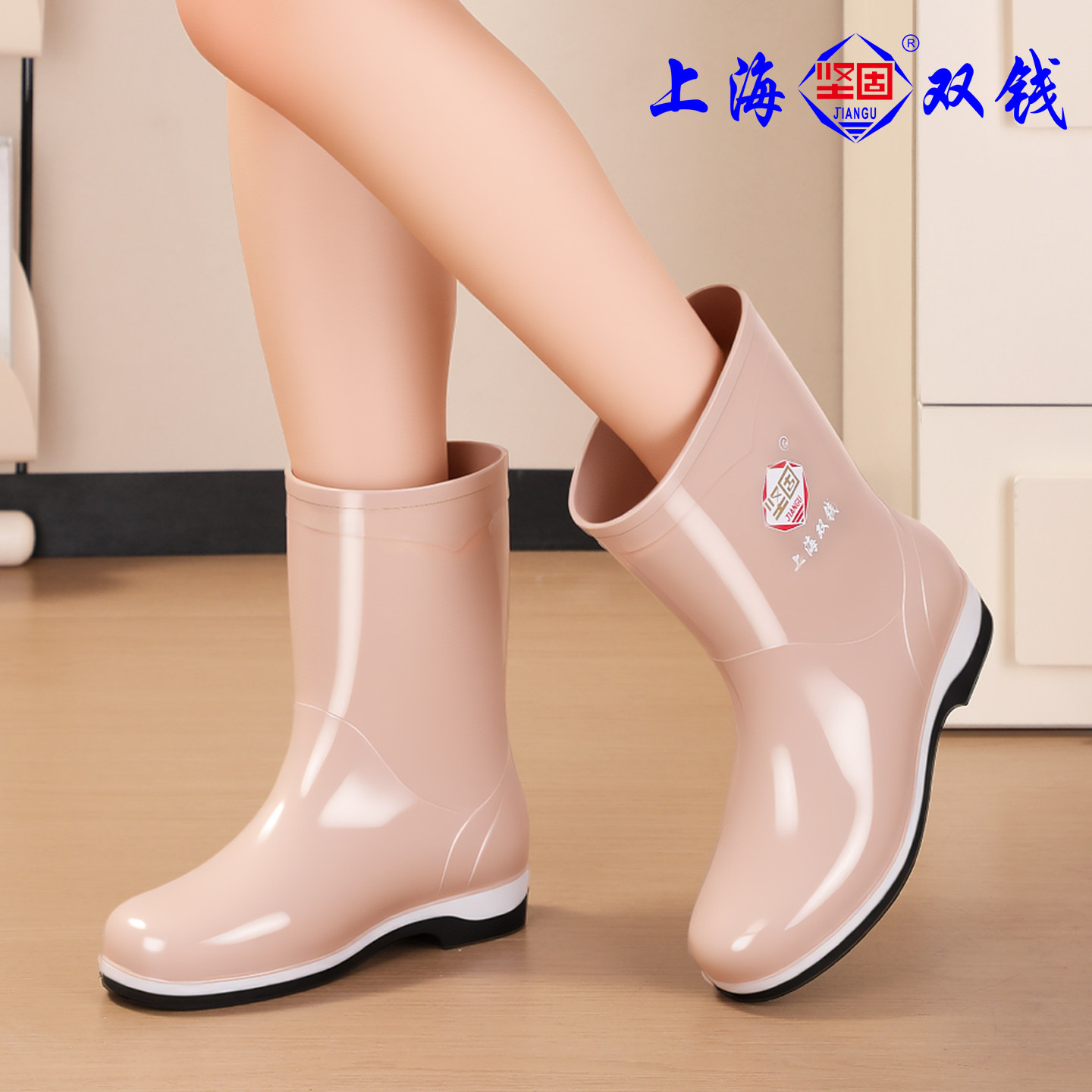 低帮双钱坚固水鞋胶鞋女士中筒短筒加绒雨靴速干雨鞋舒适不磨脚