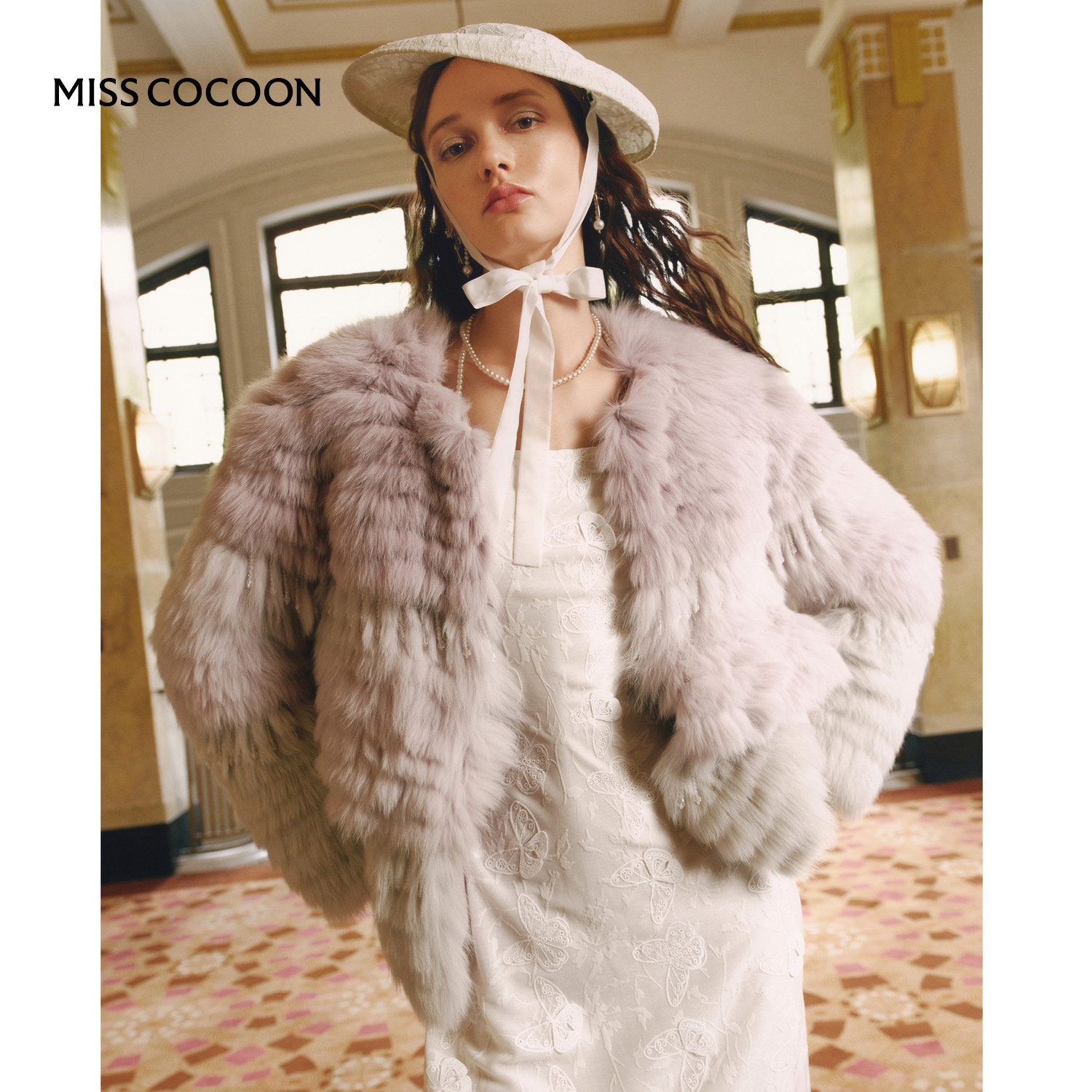 MISSCOCOON可可尼短款毛毛外套女2025秋冬新款渐变色狐狸毛皮草