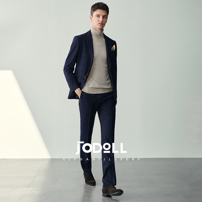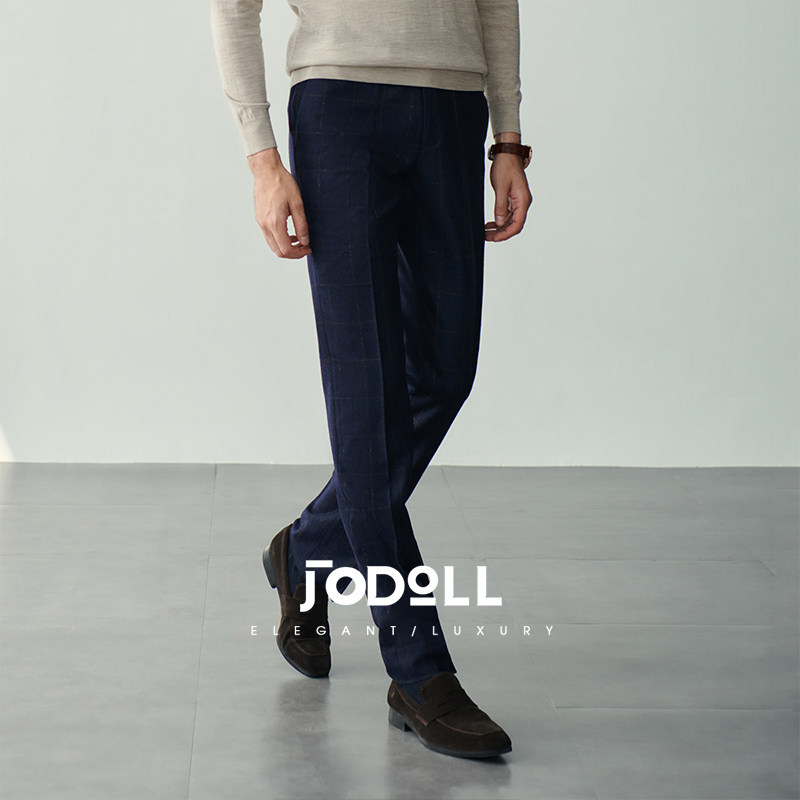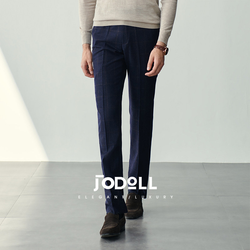 JODOLL乔顿【意大利进口纯羊毛面料】西裤男商务休闲修身格纹长裤