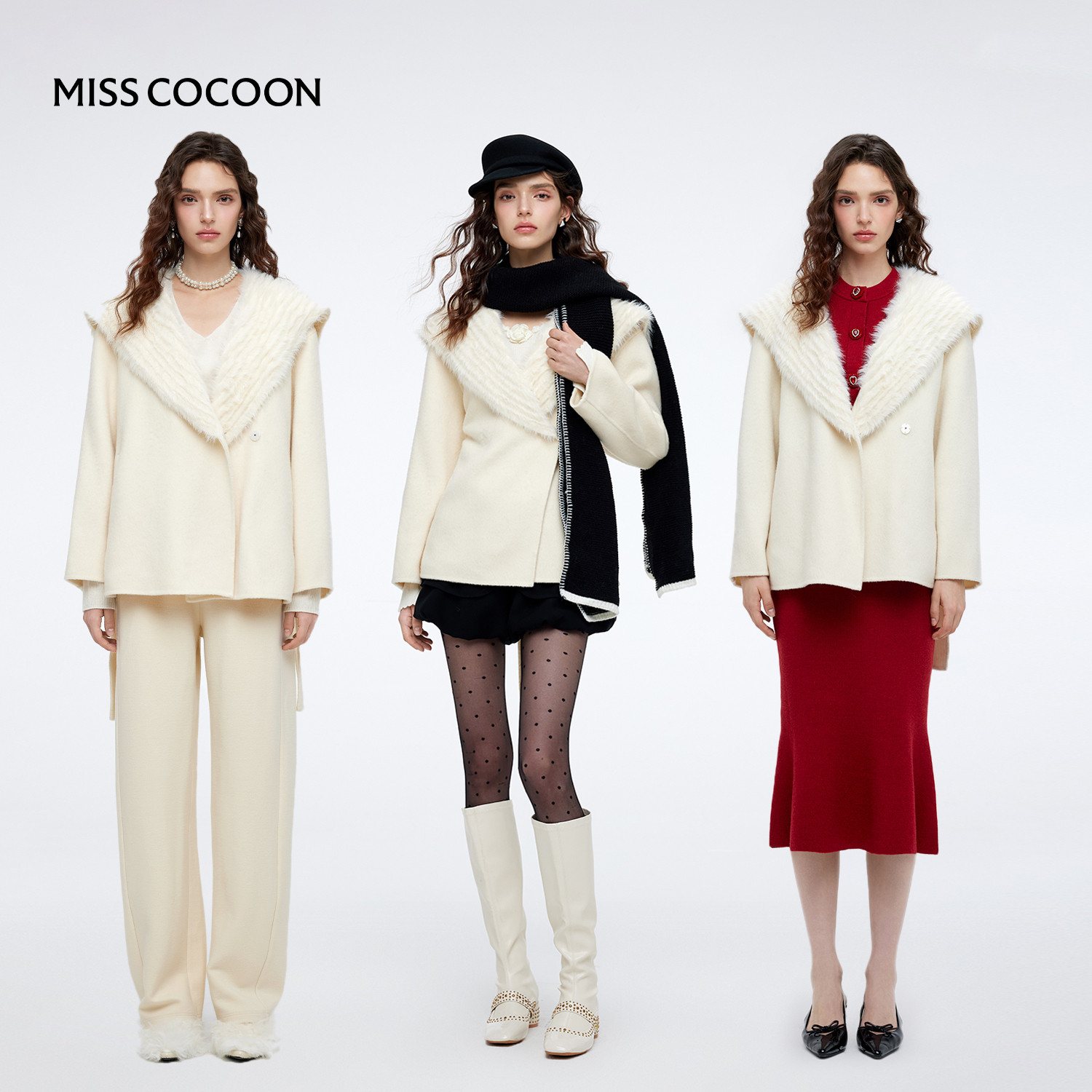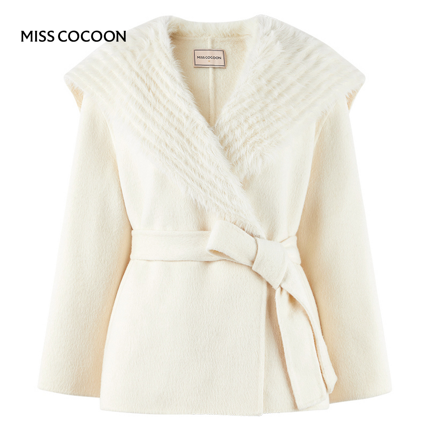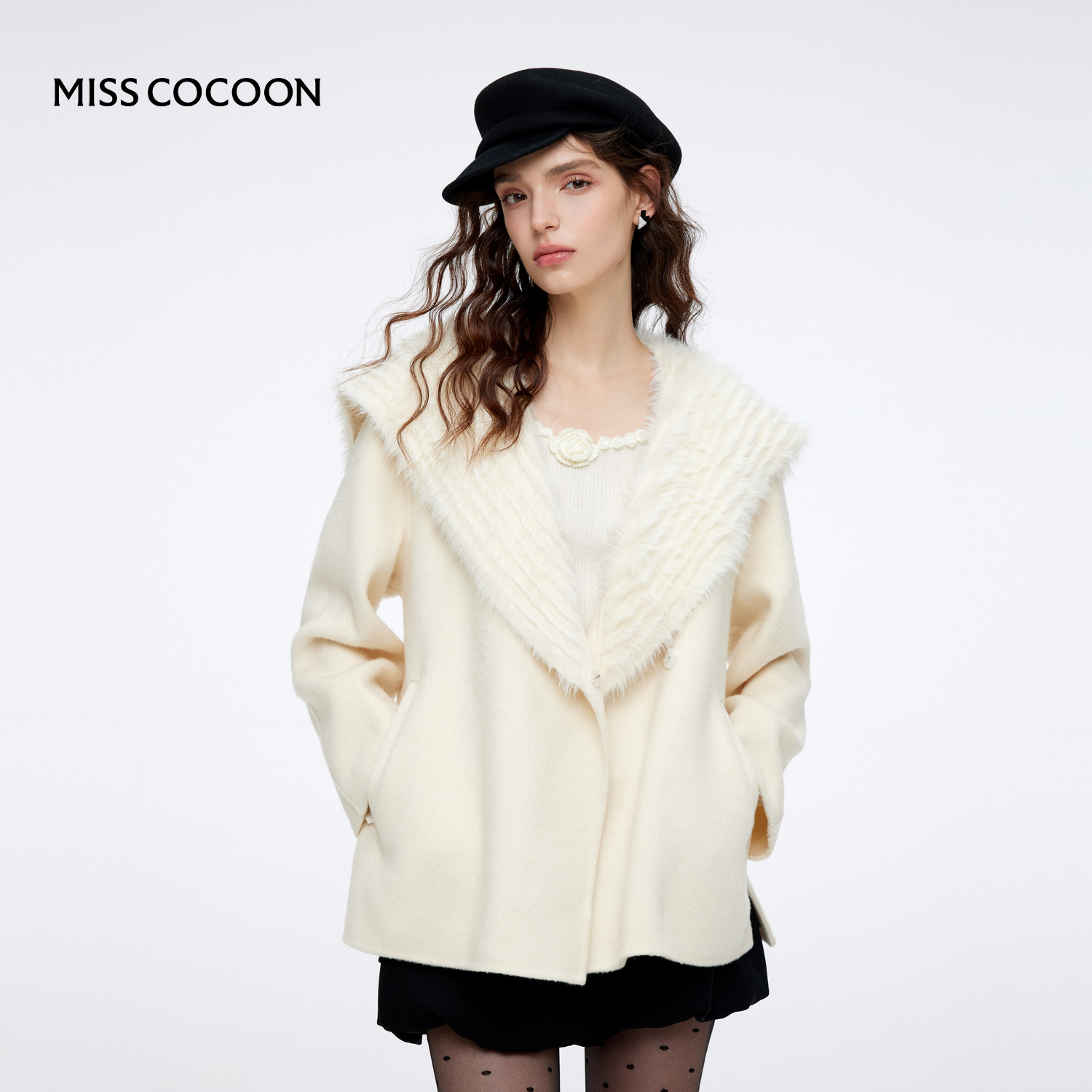 MISSCOCOON可可尼翻领毛呢外套女2025冬新款慵懒风通勤绵羊毛大衣
