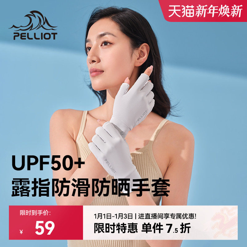 伯希和防晒手套女士美甲手套漏指夏防紫外线防滑薄款骑行遮阳手套